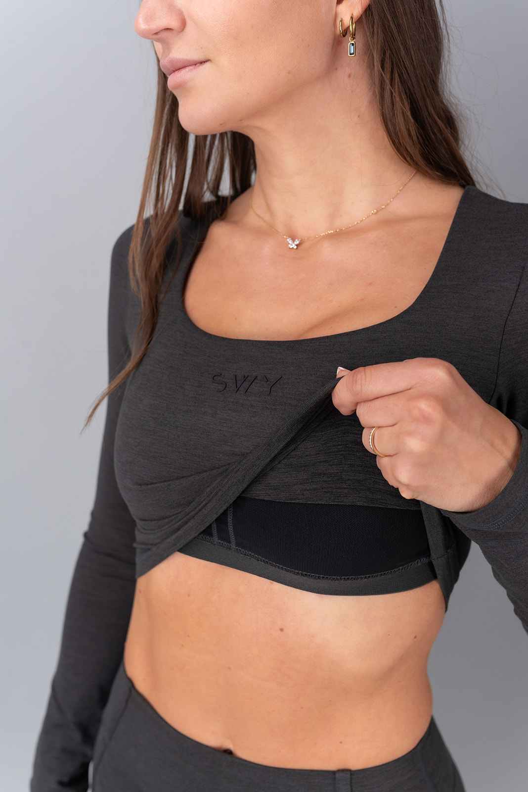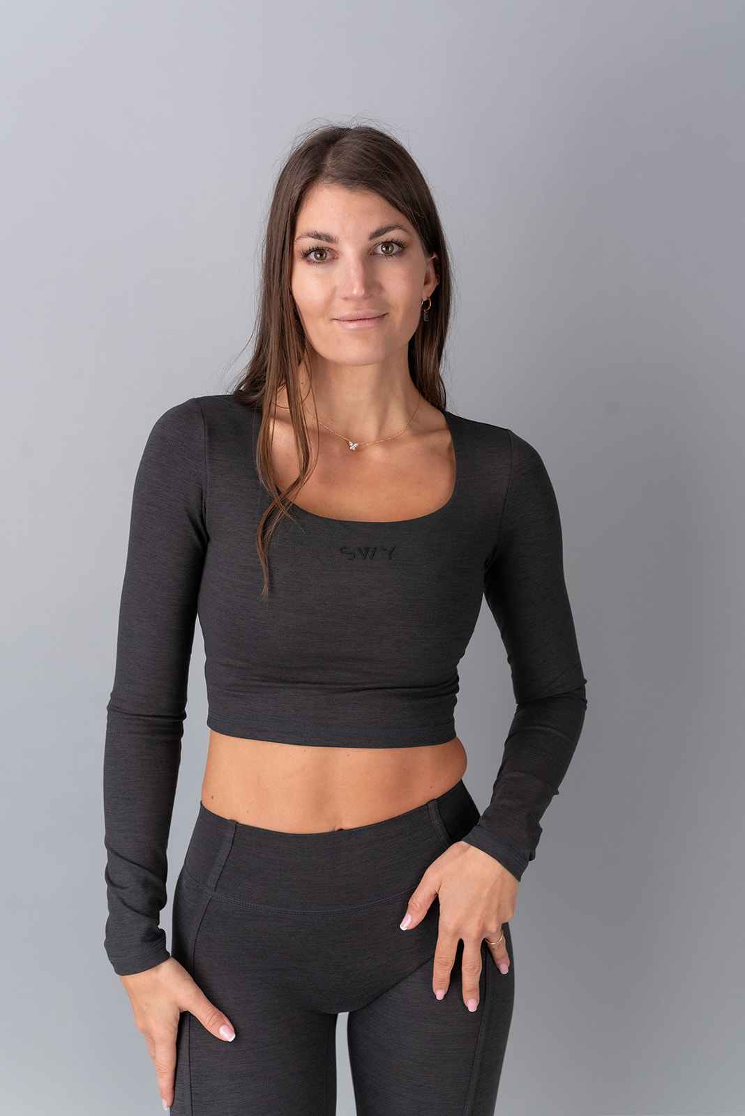 Long sleeve crop top is very soft and stretchy.