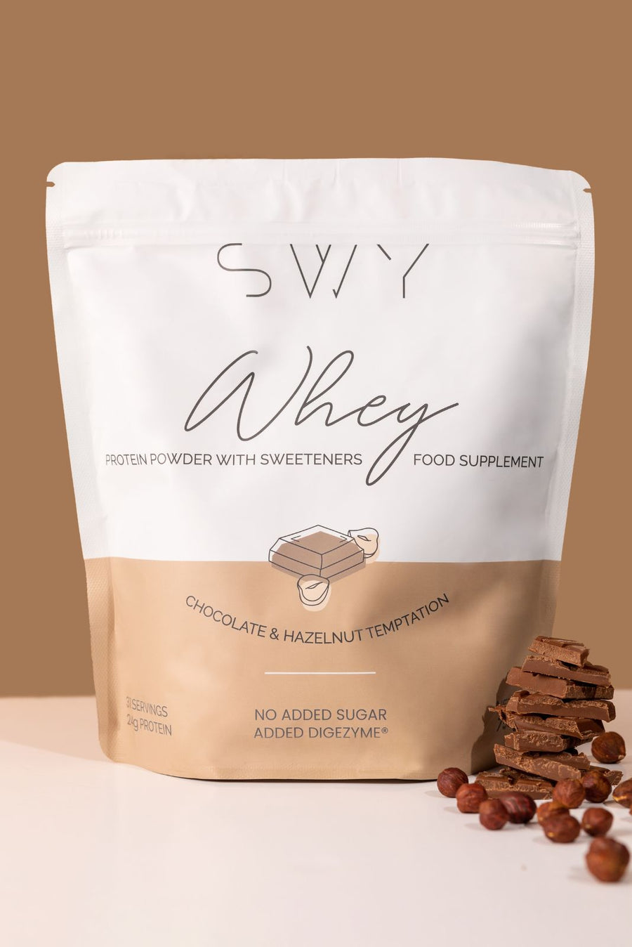 Ingredienti: olio vegetale, proteine del siero di latte, maltitolo, latte in polvere, pasta di nocciole 10%, burro di cocco e karitè, inulina, lecitina e aroma di vaniglia.