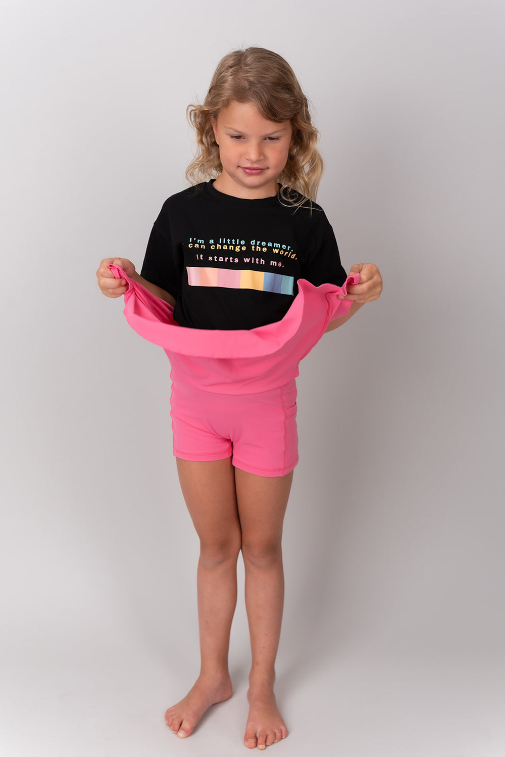 Il tessuto leggero e i tagli morbidi offrono libertà di movimento e un’atmosfera estiva spensierata.