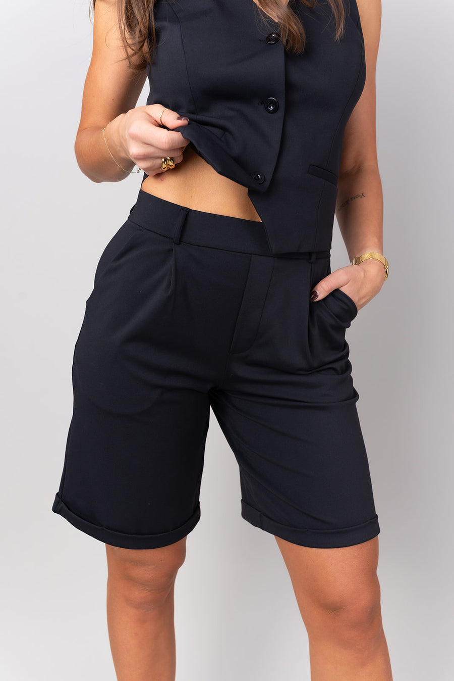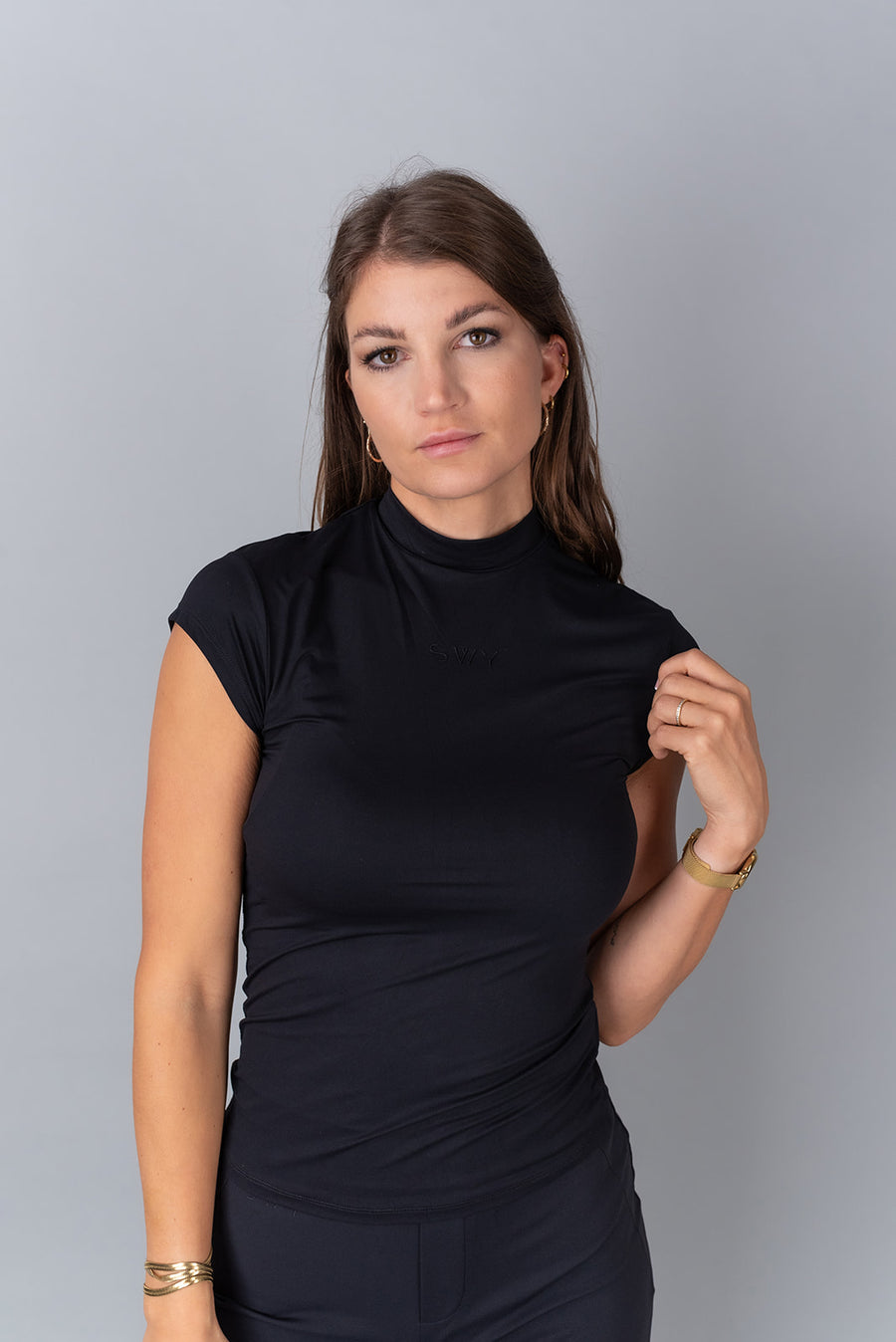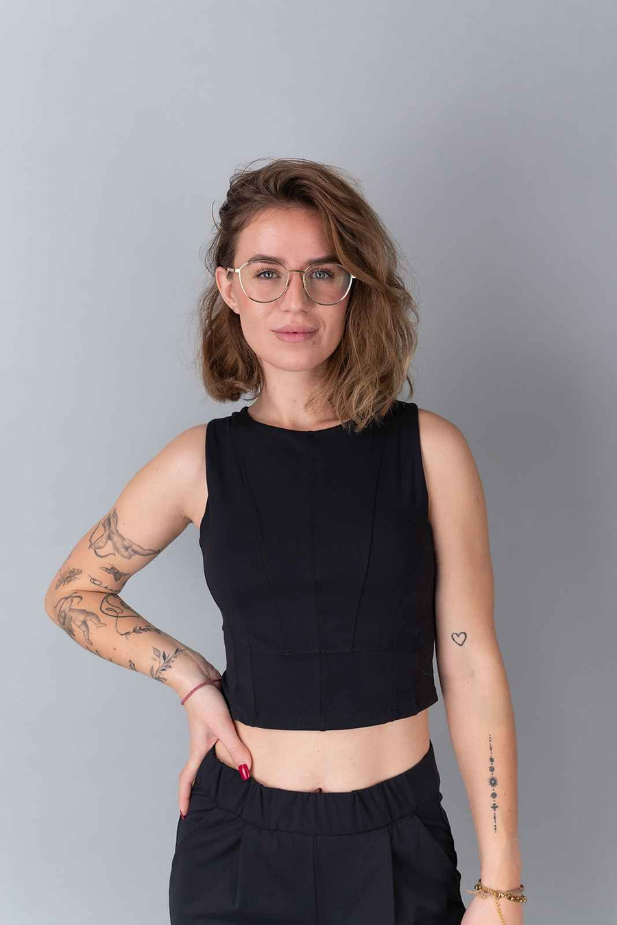 Questa canotta è progettata per valorizzare la parte superiore del corpo con una scollatura morbida e arrotondata e una vestibilità modellante che esalta le curve naturali. Dotata di un reggiseno invisibile integrato con coppe rimovibili e dettagli discreti, offre comfort per tutto il giorno grazie al tessuto leggero ed elasticizzato.