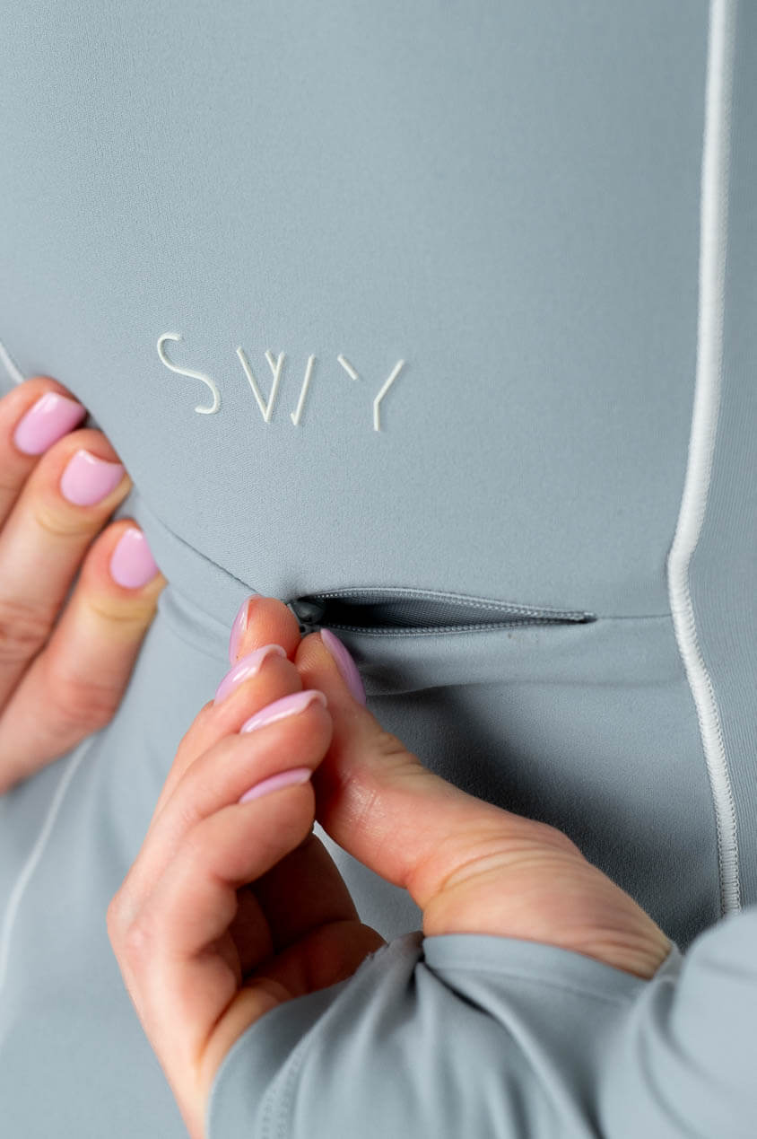 Long-sleeve shirt with half zipper from the Evolve collection, designed to flatter your silhouette, featuring a zippered pocket at the back.