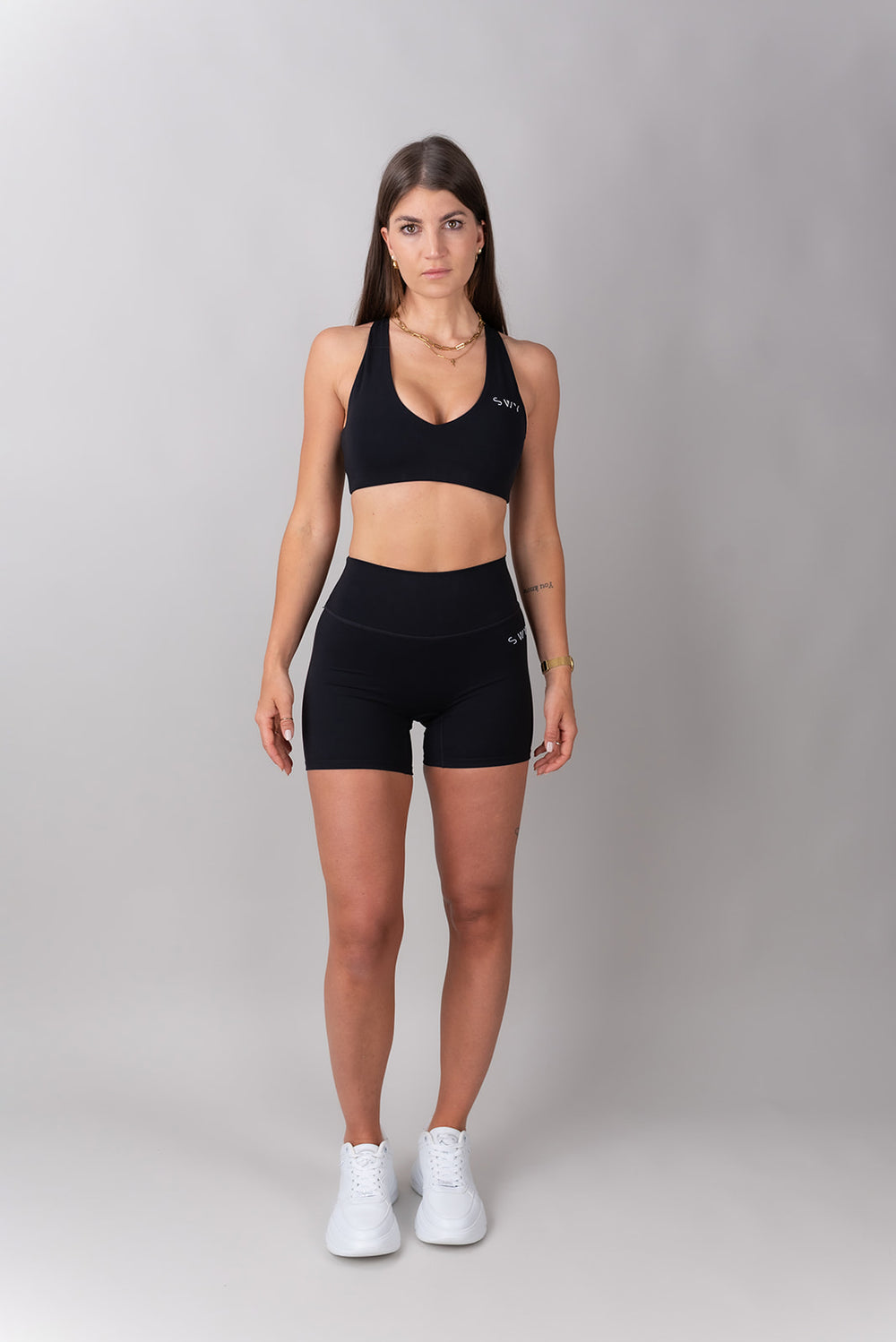Cheer top s prekrižanimi naramnicami je eleganten in funkcionalen, ki nudi srednjo oporo in te ne ovira med aktivnostmi, hkrati pa nudi moden videz.